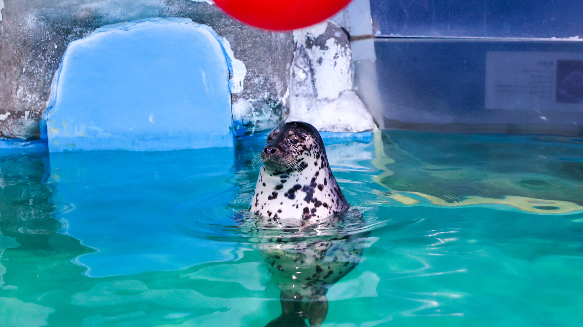 சினிங் நகரில் குளிர்காலத்தை ரசிக்கும் ஒரு புள்ளிக் கடல் நாய்