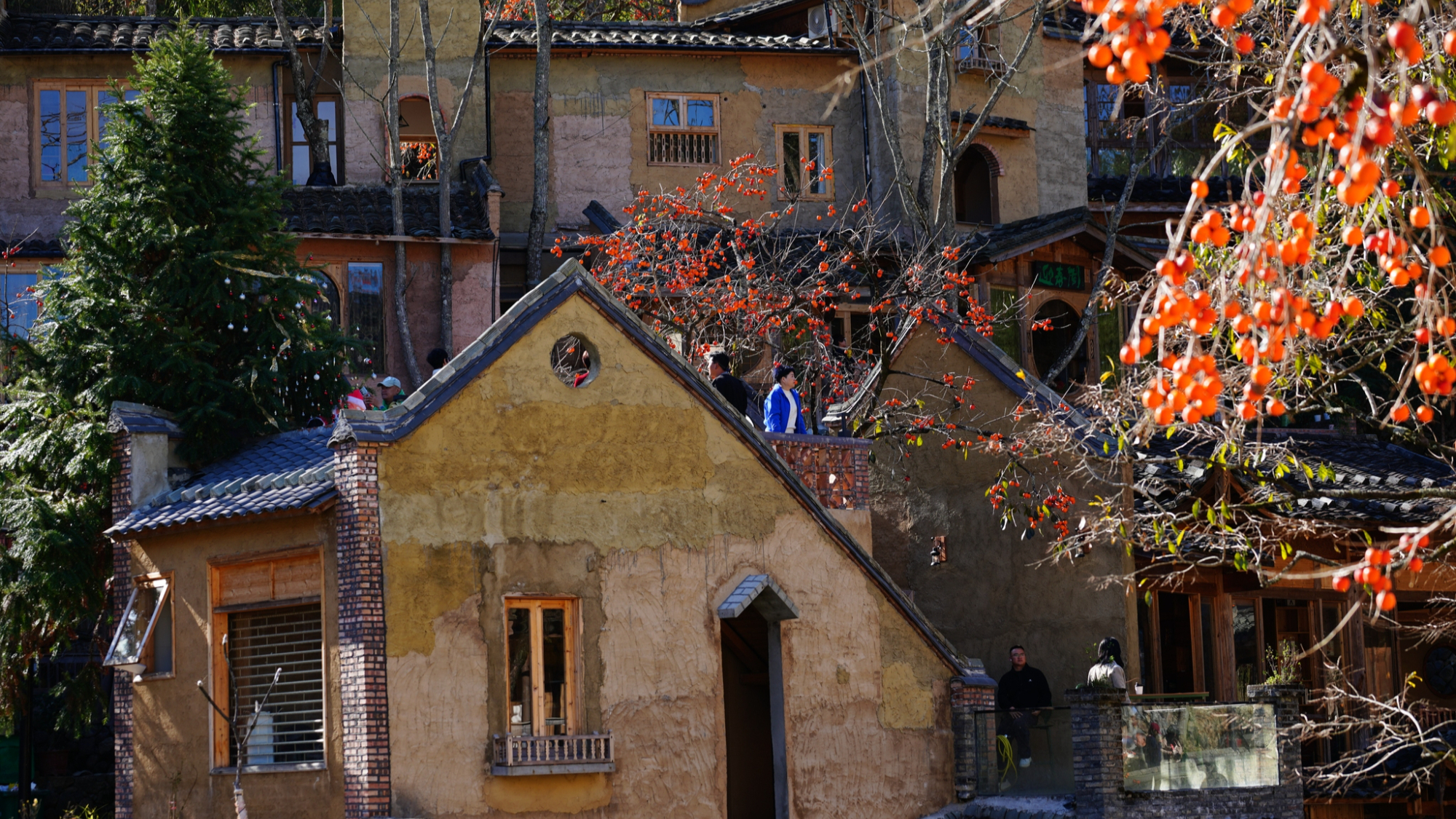 பாரம்பரிய கட்டிடங்களை அலங்கரிக்கும் பெர்சிம்மன் பழங்கள்